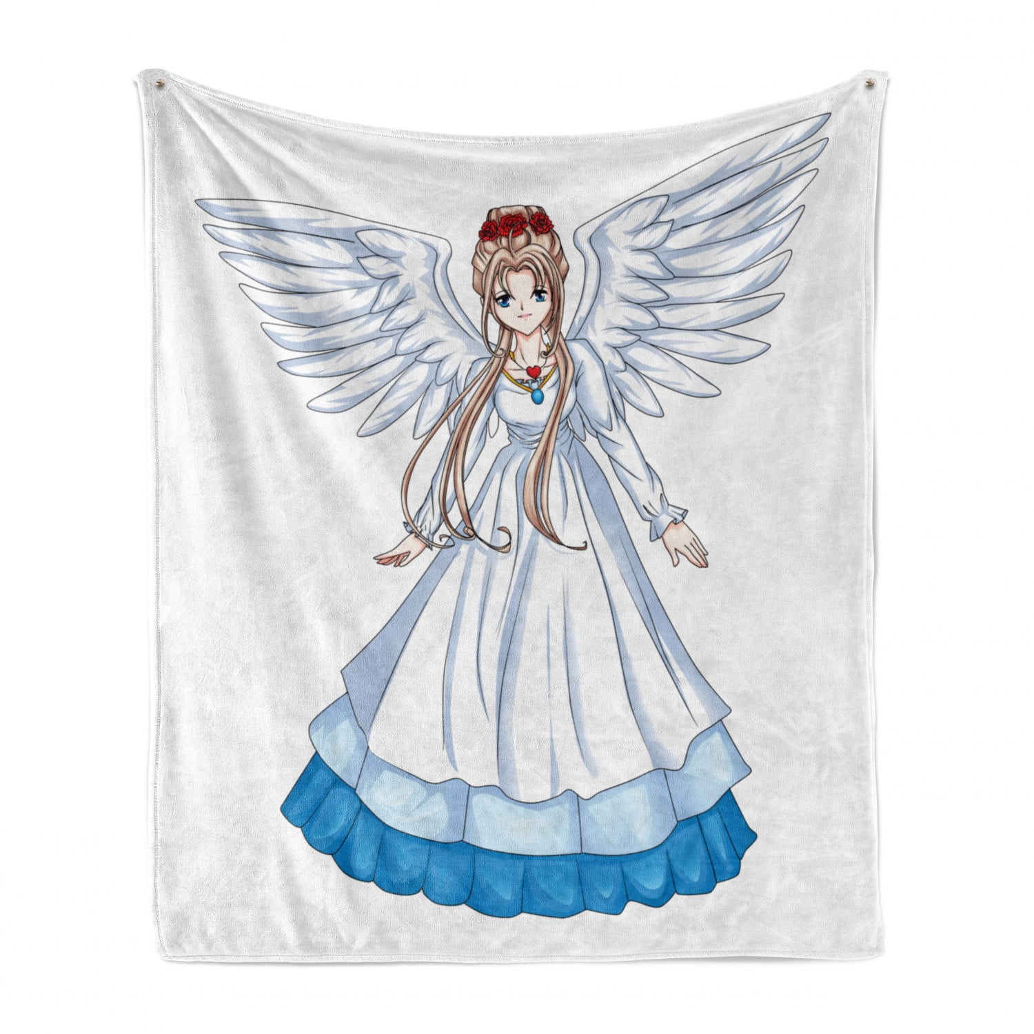 Anime Soft Flannel Fleece Throw Blanket Cartoon Illustration Of Angel Wings And Flowers Fairytale Japanese Manga Print Cozy Plush For Indoor And Outdoor Use 60 X 80 White Blue By Ambesonne